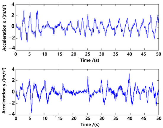 Raw measurements of the acceleration in the world frame () are shown in Figure 7, which will be used in the state model (5) for estimation.