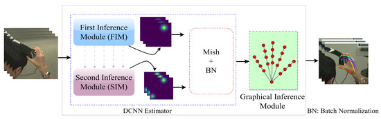 The proposed model incorporates two modules called the First Inference Module (FIM) and the Second Inference Module (SIM). A final Graphical Inference Module is employed to connect the FIM and SIM sequentially. The FIM produces a provisional feature score for the keypoints K of the hand during the preliminary stage. The VGG-19 block’s revert feature score can readily integrate with the proposed SDFPoseGraphNet. The final module utilizes the parameters generated by the SIM, which depict spatial constraints among the critical points of the hand. The suggested framework for HPE differentiates itself from previous frameworks by leveraging the SIM, which enables the association of the final graphical module with DCNN [13,14]. In our work, the parameters of the PGM are not considered as independent parameters. Rather, they are tightly linked to the input image through VGG-19, making them adaptable and responsive to different variations in the input images. This integration allows the model to capture and utilize relevant information from the input image effectively, resulting in improved performance and adaptability in various circumstances, as mentioned earlier.