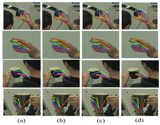 An ablation study was carried out using the Panoptic dataset to substantiate the effectiveness of our optimization strategy. To evaluate the impact of the SA module, it was integrated into the FIM, while all other aspects were kept unchanged. As per the experimental results demonstrated in Table 4, an average performance enhancement of 3.52% was observed. Figure 8a illustrates the notable improvement in the network’s output by integrating VGG-19 with SA. The SIM generates 40 feature maps as explained above. However, SIM consistently predicts the same 2D coordinates for pairs of neighboring hand keypoints that share a common edge in the tree structure. This consistency arises because the relative positions between these keypoints are fixed and learned during training. Consequently, during testing, the SIM consistently predicts the same relative positions, resulting in consistent 2D coordinate predictions for these 21 keypoints.