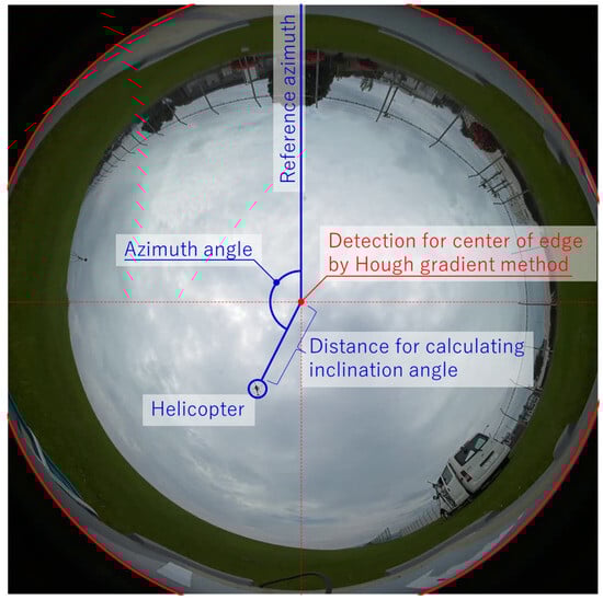 Image of the calculation of azimuth and inclination angles in a fish-eye camera image.