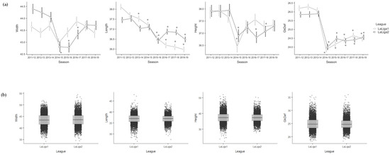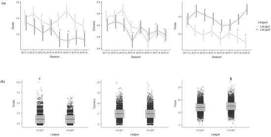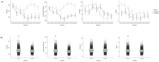 | LaLiga2 - LaLiga1 | 0.023 | 0.186 | 0.902 | −0.005 | 0.119 | 0.967 | −0.105 | 0.167 | 0.530 | −0.126 | 0.160 | 0.430 | |