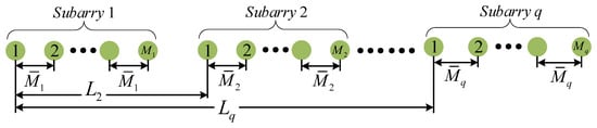 In this section, we try to use Q ULAs to construct a new sparse array. We assume that the qth subarray has sensors with inter-element spacing . The displacement between the first sensor in the first subarray and the first sensor in qth subarray is , where . The array structure is shown in Figure 1. So, the sensor location of the qth subarray is . Moreover, the difference coarray of the qth and th subarrays is
