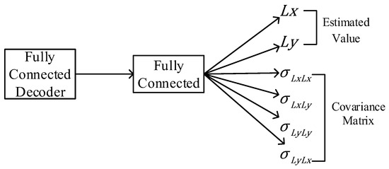 In the expected goal, the output of the BERT model set in this paper is the estimated latitude and longitude value. Compared with Equation (6), it can be found that the model cannot express the covariance matrix, so the output of the model needs to be further modified. The solution of this paper is to send the output of FC-decoder into a one-layer fully connected layer, as shown in Figure 4. The 2-dimensional output is extended to 6-dimensional output, which is used to generate the prediction value and covariance matrix.