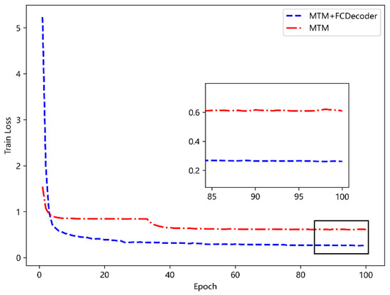 In this subsection, in order to verify the effect of the FC-decoder layer on BERT model training, the comparison experiment of removing the FC-decoder layer and only retaining the MTM layer is performed. The results are shown in Figure 9. It can be seen that MTM combined with FC-decoder can effectively improve the training effect. The analysis is because FC-decoder can focus on the characteristics of the trajectory at the global level and pay more attention to the global characteristics of the trajectory, while MTM focuses on restoring the information of the masked position and pays more attention to the local characteristics of the trajectory. The combination of the two can extract trajectory features more effectively, and improve the performance of the model.