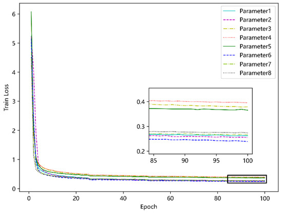 After determining the loss function and structure of the model, this paper conducts a combination exploration of the input dimension, output dimension, the number of heads and the number of encoder layers of the model, and makes the following eight sets of comparison experiments to find the optimal model parameters, as shown in Table 2. The experimental results are shown in Figure 11. As can be seen, parameter 6 is the best.