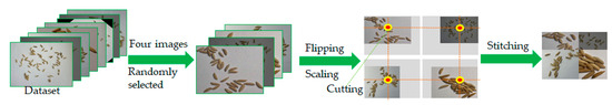 7]. The characteristics described above, such as color and texture, are low-level features obtained using artificial feature extraction methods; these are highly accurate for detecting and counting crops in a sparse state. However, rice grains are small targets with a high overall similarity in color and morphological characteristics, but low resolution. They also possess different degrees of adhesion which, during thousand-grain weight measurements, complicates the task of distinguishing rice grains and affects counting accuracy. Hence, it is difficult to obtain accurate and stable features using image-processing methods involving manually designing features according to changes in the target; such methods are of limited value in the rapid and accurate detection and counting of rice grains.