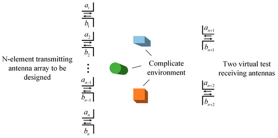 As shown in Figure 1, we consider a general wireless communication system with an n-element transmitting array to be designed and two virtual test receiving antennas. Then, the entire wireless communication system can be viewed as a (n + 2)-port network and then characterized by the scattering parameters, expressed as
