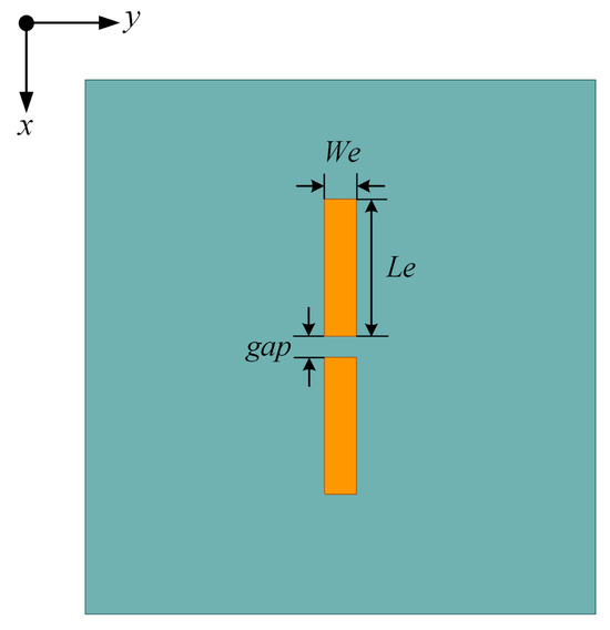 For tunnel communication, low-profile antennas such as microstrip patch antennas and printed dipoles are preferred because the space left for the whole antenna array is very limited. However, the microstrip patch antenna is not qualified to be an array element because of its extremely low radiated power in the endfire directions. Thus, the printed dipole is selected as the array element due to its benefits of low profile, light weight, small size, low cost, and easy integration. As can be seen in Figure 2, a dielectric printed dipole operating at 3.5 GHz is designed on an FR4 substrate with a thickness of h, a relative dielectric constant of 4.4, and a loss tangent of 0.02. The length and width of the two striped arms are We and Le, respectively. Both the arms are printed on the same side of the substrate. The optimized values for the length and width of the arm and the gap are listed in Table 1. Compared with the traditional metal dipole with a length of ( is the wavelength in free space), the length of the proposed printed dipole is only due to the presence of the substrate, leading to a more compact antenna size.
