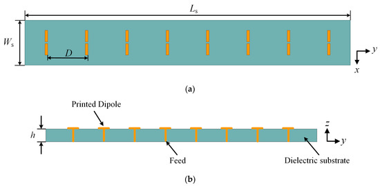 Different views of the printed dipole array. (a) Top view; (b) side view.