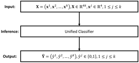 In the unified inference strategy, there is only one single classifier, and therefore, the optimization of the whole inference engine is identical to optimizing this single classifier, i.e., Equation (11). However, as for the independent inference strategy, there are k independent classifiers, as depicted in Figure 6. In this case, the optimization of an inference engine is equivalent to optimizing the following k independent equations: