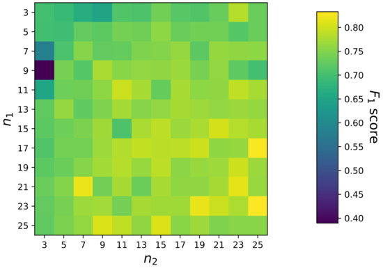 Since the crisp output from Equation (24) can be interpreted probabilistically, the proposed FIS can be used as a probabilistic classifier. To determine the predicted class for the given sample , a threshold value to the crisp output is needed. For example, when a threshold value of is applied, can be calculated by: