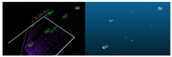 In Ref. [27], a combination method is proposed that uses both multi-scale voxel features and keypoints, Ref. [28] using both RGB and point cloud information through extracting 3D proposal boxes in the Bird’s Eye View (BEV) and project them to RGB image to obtain more features. The performance of single-frame detection is unsatisfactory due to the sparsity and occlusion in the single-frame data. With the release of the multiple-frames dataset [29,30], exploring how to utilize multiple frames has become a research topic in recent years.
