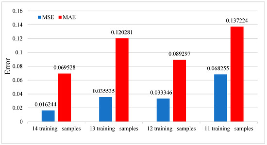The batch size explicitly influences the network’s performance, and the batch size of 14 samples has the best effect. In the method of variable learning rate employed, the first 500 epochs of the training process are set to 0.001 to optimize the network quickly and then use the learning rate of 0.00005 for accurate convergence. Finally, the test data are input into the trained network for evaluation, and the accuracy is evaluated against the real data.