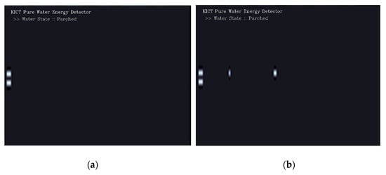 The process of monitoring the changes in flow energy observed when noise was continuously generated for 1 min in front of WAVE-Surf is presented in Figure 16a, whereas the result of monitoring the flow energy without noise is depicted in Figure 16b. The red part indicates the observed flow energy when the flooding distance is 0.61 m. The result of generating continuous noise between WAVE-Surf and the water tank at the same distance as in (b) is presented in Figure 16c. The method was programmed to express noise in grey to distinguish between noise signals. The experimental results revealed that the flooding distance was 0.78 m, which was identical to the case without noise, even when continuous noise was generated.
