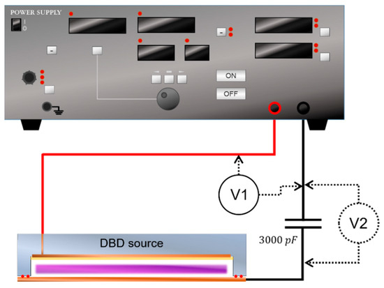 Subsequently, considering the sum of and as the voltage across the DBD source, it can be expressed as Equation (4).