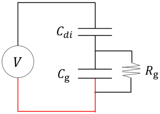 represents the electrode gap voltage, represents the measured voltage of the entire DBD plasma generator system, and represents the voltage applied to the dielectric barrier (polyimide) within the DBD source. In Equation (1), the values of can be obtained through measurements. However, can be solved using Equation (2). As for , since it is fabricated in a form that covers the entire electrode, it is calculated using the parallel plate capacitor model.