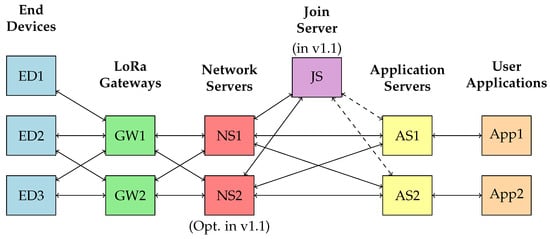 - Join Server (JSs): Introduced in LoRaWAN v1.1, the join server is responsible for securely handling the initial activation process for EDs, providing a higher level of security.