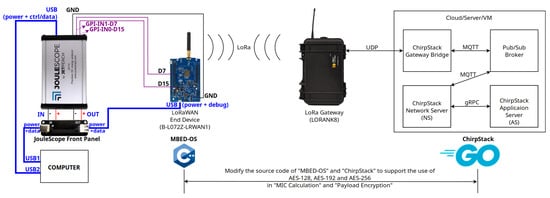 - Thaenkaew, P.; Quoitin, B.; Meddahi, A. Evaluating the cost of beyond AES-128 LoRaWAN security. In Proceedings of the 2022 International Symposium on Networks, Computers and Communications (ISNCC), Shenzhen, China, 19–22 July 2022; pp. 1–6. [Google Scholar] [CrossRef]