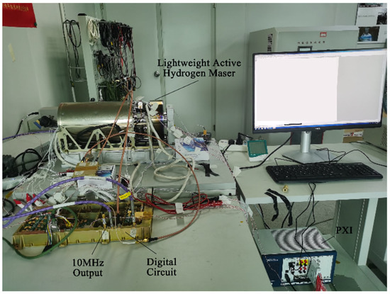 The designed digital circuit was used to control the new lightweight active hydrogen maser, as shown in Figure 12. At the same time, the high-precision digital acquisition instrument was used to collect telemetry data such as maser power, light intensity, CAT voltage, and OCXO voltage.