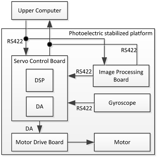 LOS stability accuracy is an important technical indicator of the airborne optoelectronic platform. The attitude change of the carrier will directly affect the LOS pointing of the system through the friction torque and mass imbalance torque when the carrier flies during a large maneuver under a complex electromagnetic environment. At the same time, the complex electromagnetic environment causes the gyroscope and other sensor elements to produce large electromagnetic noise, which together with the disturbance will lead to the LOS jitter of the optoelectronic platform, thus in turn leading to imaging blur, image jitter, and other phenomena of the detector, which may even deviate from the detection field-of-view of the system, leading to tracking failure [3,4,5,6].