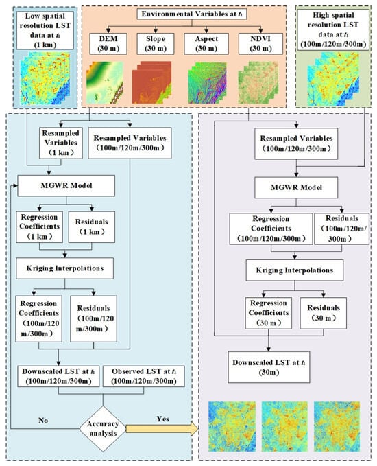 The specific steps of MGWR-based LST downscaling method are shown in Figure 4 and are summarized as follows: