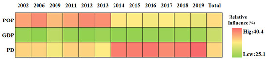 The relative influence of SUHI of the population shift driving factors in Chengdu City from 2002 to 2019.
