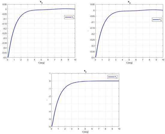 The tracking errors are shown in Figure 4, and the convergence to zero of the states of the translational dynamics is observed.