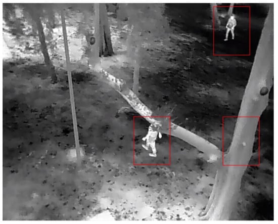 The present paper describes an approach to real-time person detection from thermal images captured from an aerial perspective in complex forest scenarios []. There are many challenges due the fast movements of the UAV, the image instability, and the relatively small size of the target person. Due to the altitude and attitude of the flight of the vehicle, the appearance of observed objects is complex, and it is difficult to detect and control the stabilization in real-time during the inspection of wooded areas with aerial vehicles.