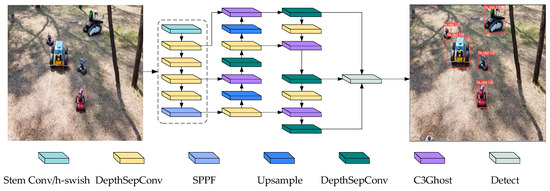 - To reduce the parametric number of the model and improve the detection speed of the model deployed in the devices, The LCNet was used as the backbone of YOLOv5n for extracting features, and the depthwise separable convolution was used to substitute the normal convolution in the neck and head parts. Additionally, the C3Ghost [26] module was introduced to replace the original C3 module.