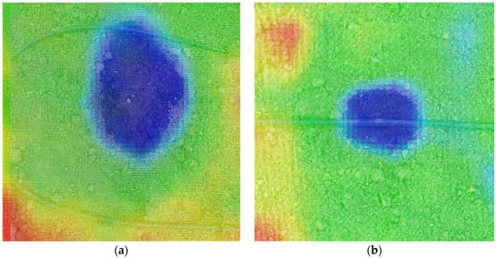 It is incorrect to assume that every irrigation point is a leaking point. To avoid such a situation, it is also important to consider the location and size of the leakage point. In the case where an 8 × 8-pixel image is used, due to the low resolution, not every anomaly observed will potentially indicate a water leak. With the interpolation method applied, the 8 × 8-pixel image becomes sufficiently clear and visually useful. Thus, when the image resolution is increased, it is appropriate to evaluate whether the irrigated area has received more water than necessary by calculating the area from the measurement points. For this, the calculation of the area where the water spreads using the contour’s calculation in OpenCV can be made from the image. If this area is more than the desired size, then it is evaluated as leakage; otherwise, it is considered normal irrigation.