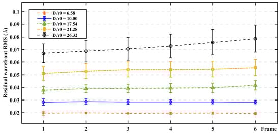 RMSe of 6 consecutive frames of distorted wavefront under different D/r0.