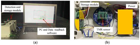 Experimental system: (a) data acquisition system; (b) internal structure diagram of the detection and storage module.