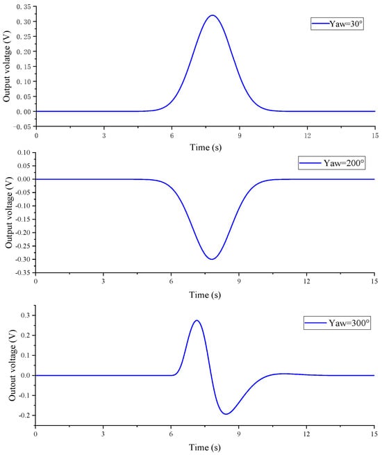 By taking into account the sensitivity of the TMR sensor and the amplification provided by the hardware op amp circuit, we have transformed the three typical magnetic anomaly signals obtained from the simulation into voltage signals outputted by the sensor. These voltage signals are illustrated in Figure 12.
