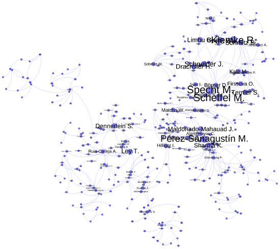 Furthermore, while our study found the most central authors and papers, it also found authors that have published a large amount of papers during the last ten years. If we take a look at our results, we see that publishing a larger amount of papers does not imply being a more central author, as the centrality measure depends on the relationship with other authors. In fact, only one author (“Sharma K.”) appears in both lists (most central authors and authors with a larger amount of papers at the conference). If we look at the citation network, we see that two of the biggest nodes are papers by “Loboda”. However, we do not see this author highlighted in the co-authorship network. In addition, we also see that almost all authors that we highlighted in our results appear as the main author of the paper in the citation network. This observation aligns with the ongoing discourse on the balance between the quality and quantity of scientific publications. In this setting, researchers have been gradually shifting their focus from sheer quantity to prioritizing the quality of research [54,55].