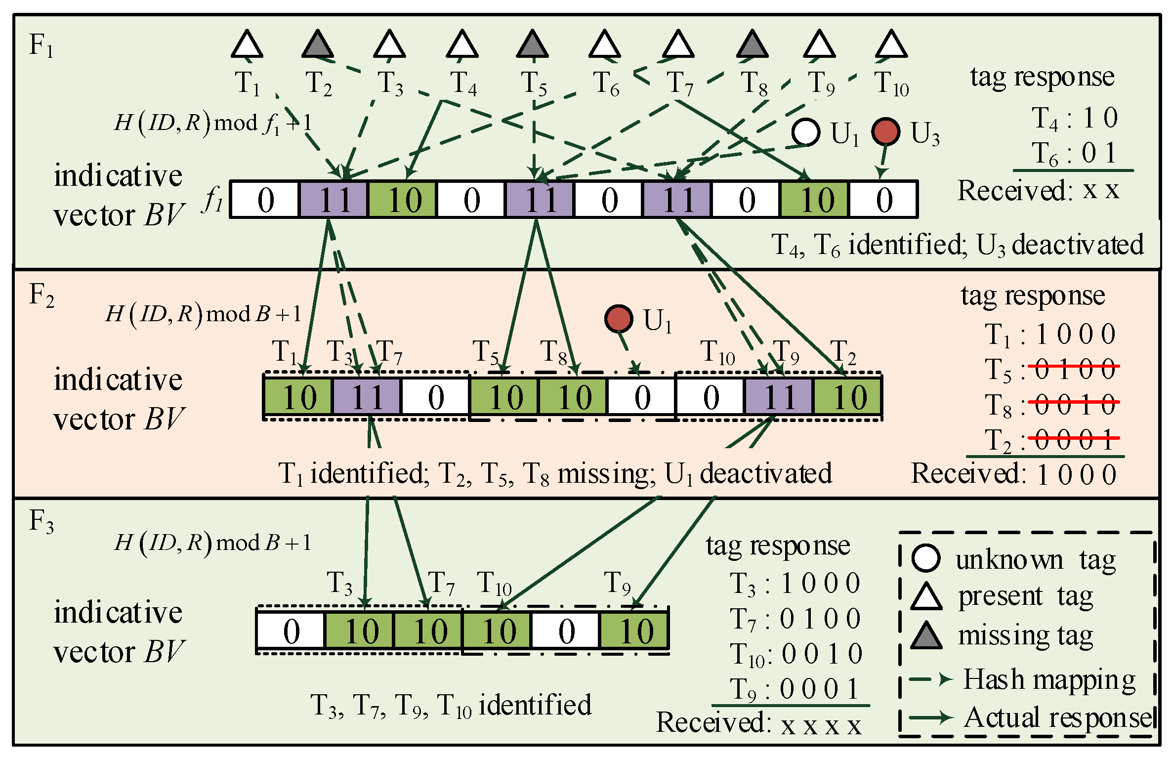- Liu, X.; Chen, S.; Liu, J.; Qu, W.; Xiao, F.; Liu, A.X.; Cao, J.; Liu, J. Fast and accurate detection of unknown tags for RFID systems—Hash collisions are desirable. IEEE/ACM Trans. Netw. 2020, 28, 126–139. [Google Scholar] [CrossRef]