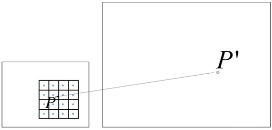Bicubic interpolation computes the pixel value at point P within the target image based on the image scaling factor, as demonstrated in Equation (2):