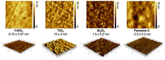 - Delivopoulos, E.; Ouberai, M.M.; Coffey, P.D.; Swann, M.J.; Shakesheff, K.M.; Welland, M.E. Serum protein layers on parylene-C and silicon oxide: Effect on cell adhesion. Colloids Surfaces B Biointerfaces 2015, 126, 169–177. [Google Scholar] [CrossRef] [PubMed]