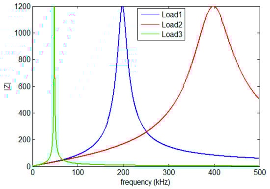 where R is the resistance, Q is the factor quality that determines selectivity, and is the resonance frequency. Examples of the behaviors of used loads are depicted in Figure 3.