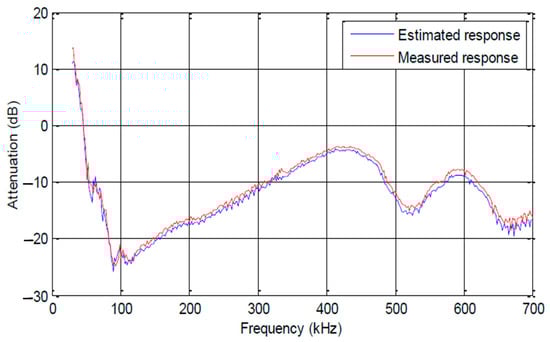 In [32], a coupling interface was implemented to build a measurement platform, facilitating a comparison of simulated results. This interface serves two major roles: The first is instrument protection. The second is the injection or extraction of the test signal to or from the mains. Then, a two-step verification methodology was proposed using the bottom-up approach. Measurements were performed in a real environment where many computers were plugged, as well as spectrum analyzers. All the measurement setups are connected to the same line phase. The test circuits were constructed using both 1.5 mm2 and 2.5 mm2 core cables, with each section spanning a length of 1 m. For NB-PLC noise, the authors opted to use the cyclostationary-based filter model already published in [33]. The impact of some events on the network is shown either by a translation of the channel response magnitude or by an attenuation at distinct frequencies. Figure 5 shows that simulated transfer function magnitude agrees with the measured one, with an error lower than 3 dB.