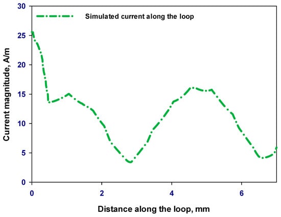 Travelling-wave current distribution along the loop’s circumference at 28 GHz.