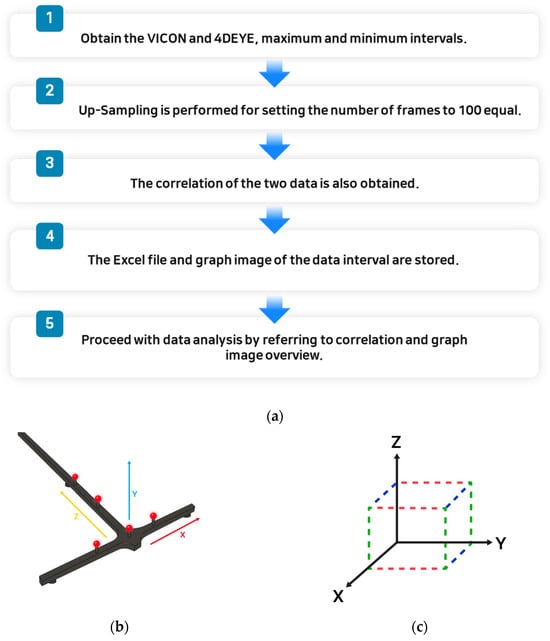 (a) Analysis process; (b) matching VICON®; (c) matching 4DEYE®.