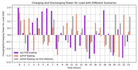 - In a situation when the trading function yields a positive value of , priority will be assigned to the exporting of energy through . This implies that any surplus energy the photovoltaic system produces at time t will be used for trading. In the event of a lack of further energy, the stored energy within a at time t is employed for trading.