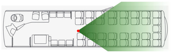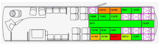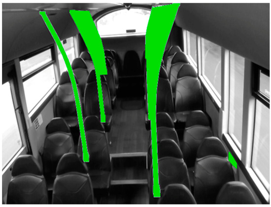 The Wrightbus StreetLite DF model was selected due to its availability by the service provider. In 2020, the number of new Wrightbus bus registrations in the UK only accounted for 1.3% of the total number of new bus registrations [30]—of which, not all may have been the model used in this study. If the statistics of 2020 represent the wider use of buses in the UK, then it can be assumed relatively few services operate with use of a StreetLite DF model. Despite this, the sample data and results collected can still be considered representative of the typical conditions found on many other bus models. The four-seat rows, separated by an aisleway, within the studied proportion of the vehicle is characteristic of layouts found in many single-decker models in use around the UK. This includes an increase in elevation towards the rear of the vehicle for engine placement. Models which do not follow this setup may influence results somewhat, based on number of seating positions, vehicle size, and service popularity. However, with limitations on vehicle size and the need to maximise passenger capacity, any variation in results is not expected to vary greatly. In terms of application, the techniques explored in this study can be utilised in any other bus model with minimal setup, providing the camera can be positioned with an adequate, unobstructed view of seating areas.