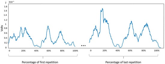 An example of EMG signal of erector spinae iliocostalis of a participant during the first and last repetition of Schedule 1.