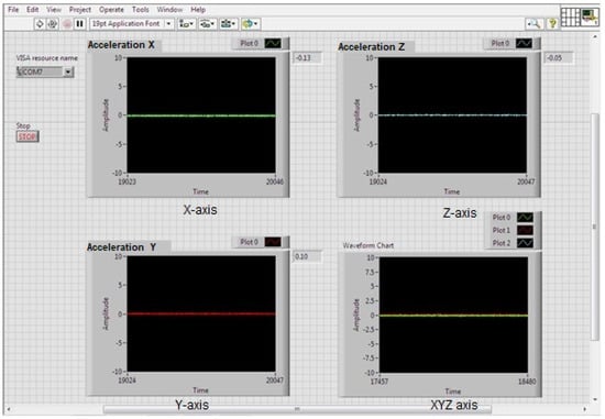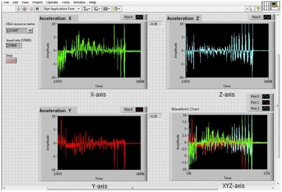 Figure 10 shows part of the data acquisition in the Z-axis at a time of 5 s. The data were processed using the LabVIEW 2022 Q3 software, National Instrument, Austin, TX, USA.