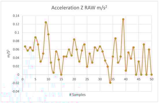 RAW acceleration data in m/s Z-axis: 50 samples.