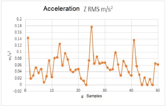 RMS acceleration data in m/s Z-axis: 50 samples.
