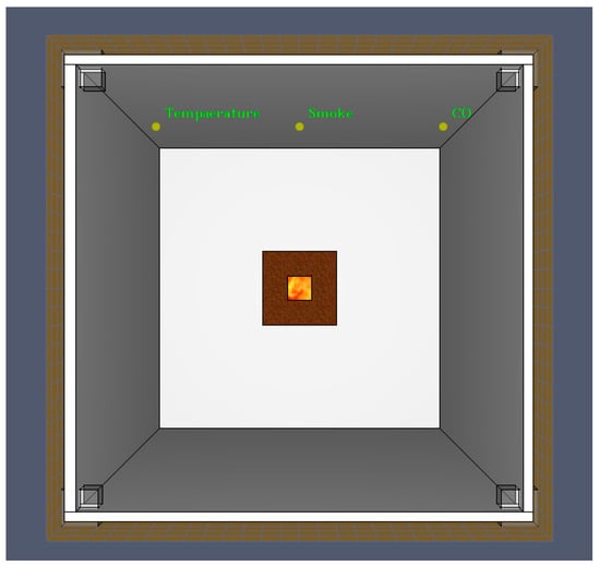 The positive samples describe the fire scenarios. To gather a substantial amount of fire scenario datasets, Fire Dynamic Simulator (FDS) [23], which is a well-known fire dynamic simulation method, is used here. Thunderhead Engineering PyroSim (PyroSim), a three-dimensional visual modeling tool based on this method, can model and simulate the fire numerical values of indoor scenes, accurately simulate the evolution of indoor fires, and record the changes in various sensor data at various locations to obtain datasets. The negative samples are datasets in non-fire scenarios, which are collected by three sensors in the indoor natural environment and interference environment.