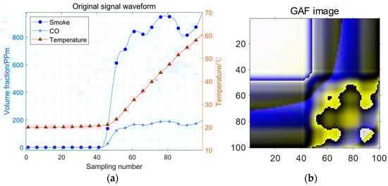The GAF image without fire: (a) the original signal waveform; (b) the GAF image.