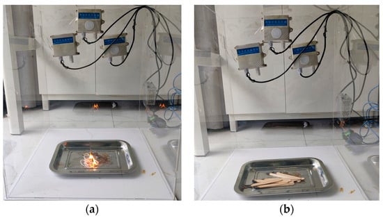 The scene of the scale experiment: (a) cotton thread combustion experiment; (b) wood smoldering experiment.